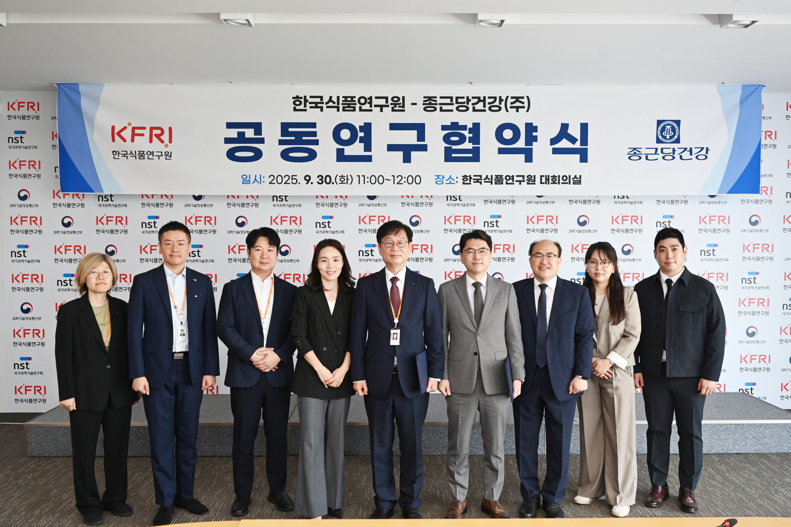 2025년 9월 30일(화), 연구원 대회의실에서 종근당건강(주)와의 공동연구 협약식이 있었습니다.