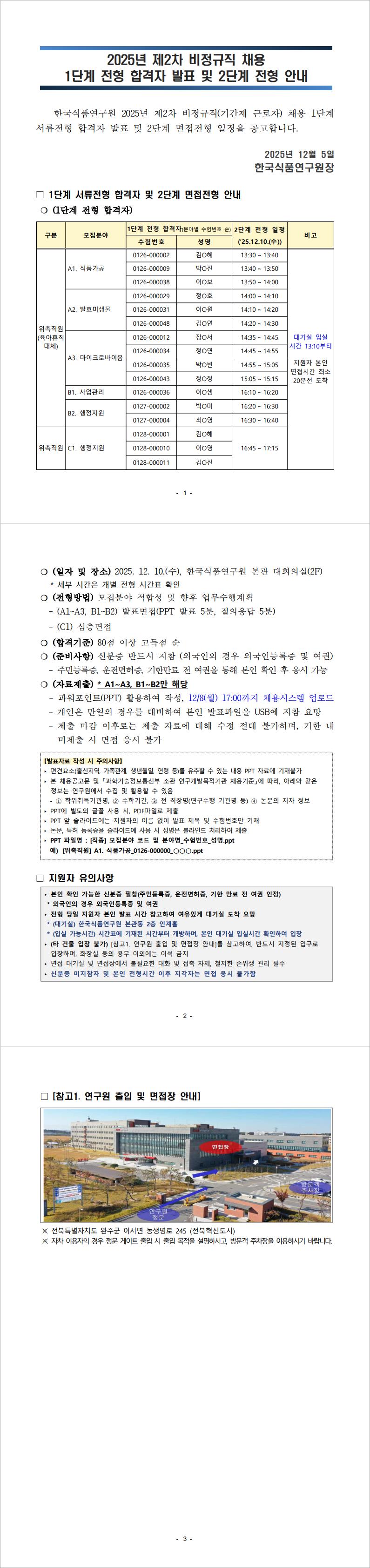 2025년 제2차 비정규직 채용 1단계 서류전형 결과 및 2단계 면접전형 계획을 안내 드리며,